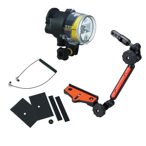 -Standard with two strobe mounts: YS mount, 1" Ball joint mount