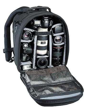 The CyberPack 6 combines a laptop, digital SLR equipment, and accessories in one convenient, easy-to-carry backpack. The CyberPack 6 accommodates two pro-sized digital SLRs, many lenses, including a f/2.8-200mm lens and a couple of strobes. Most 15" laptops, including Apple's 15" MacBook Pro, up to 11" x 2" x 14" are protected in a separate, completely foam-padded compartment. A front accessory pocket organizes CDs, a PDA, business cards, pens and cables and features Tamrac's U.S. patented Memory & Battery Management System that uses red flags to identify which memory cards and batteries are available for use. This pack is completely padded with thick, closed-cell foam and has a foam-padded plastic platform in the bottom to provide shock protection. Internal dividers can be customized to fit your specific equipment. Inside the front and main compartments, Windowpane-Mesh accessory pockets visibly store AC adapters, cables, and other accessories. A thickly padded shoulder harness, hip belt and sternum strap distribute the weight for carrying comfort. In front, Tamrac's QuickClip Tripod Attachment System secures most professional tripods. Accepts Modular Accessory System (M.A.S.) and Strap Accessory System (S.A.S.) products for complete customization. Waist belt adjust to 60".